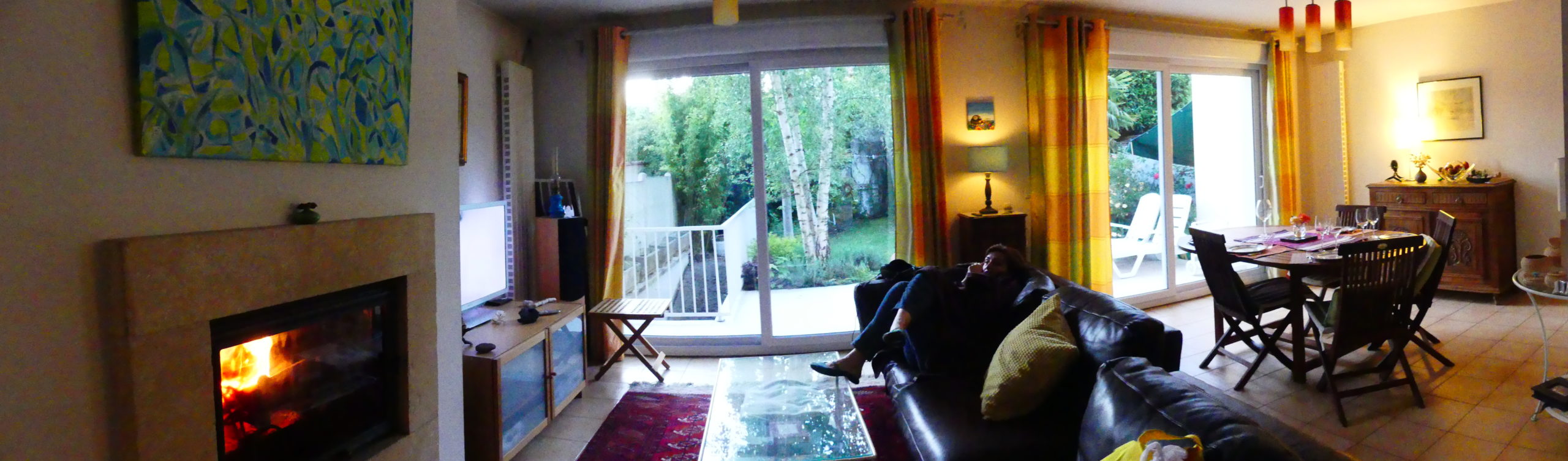 De votre canapé, le jardin, façe TV et Cheminée